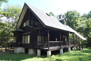 山中の傾斜地に建つ平成5年築の2LDK別荘、周囲には建物がほとんどなく静かな周辺環境です